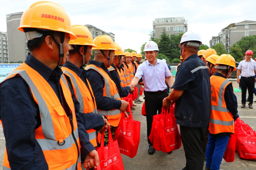 在慰問現(xiàn)場,韓士軍一行詳細(xì)了解了潤揚路快速化改造工程項目建設(shè)進展情況,為一線人員發(fā)放了防暑降溫慰問品,叮囑他們高溫作業(yè)一定要在保證工程質(zhì)量和進度的同時加強安全生產(chǎn)。他要求施工單位合理安排作業(yè)時間,嚴(yán)格落實現(xiàn)場保護措施,切實做好防暑降溫工作,時刻把人員健康和安全生產(chǎn)放在第一位,有條不紊推進各階段目標(biāo)任務(wù)。
