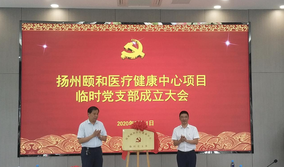 揚(yáng)州頤和醫(yī)療健康中心項(xiàng)目是市委市政府確定的為滿足婦女兒童醫(yī)療衛(wèi)生服務(wù)需要的重要民生工程。為進(jìn)一步加強(qiáng)基層黨組織建設(shè),打造精品工程,充分發(fā)揮黨組織的戰(zhàn)斗堡壘作用,8月11日上午,揚(yáng)州頤和醫(yī)療健康中心項(xiàng)目在項(xiàng)目現(xiàn)場(chǎng)大會(huì)議室舉行臨時(shí)黨支部成立大會(huì)及揭牌儀式,集團(tuán)黨委副書記徐飛、集團(tuán)黨委委員、副總經(jīng)理方璇智、集團(tuán)紀(jì)委書記曹軍及黨群部負(fù)責(zé)人出席本次活動(dòng)。市衛(wèi)健委、市婦幼保健院、邗建集團(tuán)、揚(yáng)建集團(tuán)、揚(yáng)州市建筑設(shè)計(jì)研究院相關(guān)領(lǐng)導(dǎo)及置業(yè)公司支委成員、臨時(shí)黨支部全體黨員參加活動(dòng)。