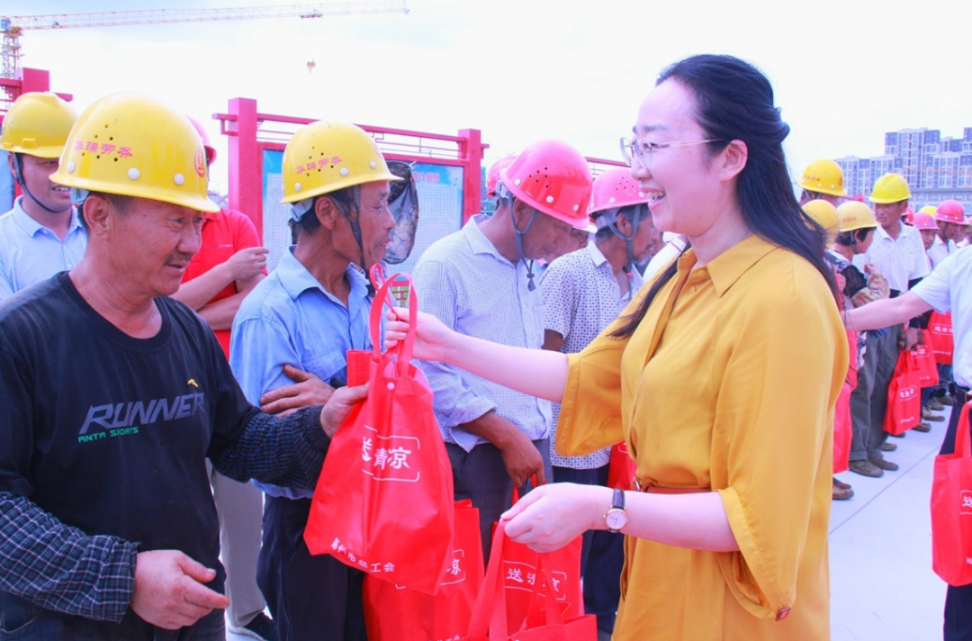 洪慧娟深入施工現(xiàn)場(chǎng),仔細(xì)察看了施工環(huán)境,詳細(xì)了解了工程進(jìn)度,親切詢問(wèn)了職工們的作息時(shí)間,對(duì)大家頂烈日冒酷暑地辛勤工作和項(xiàng)目部各類嚴(yán)謹(jǐn)可行的高溫保障措施表示高度贊揚(yáng),并為他們送上了花露水、毛巾等解暑降溫的慰問(wèn)物資。