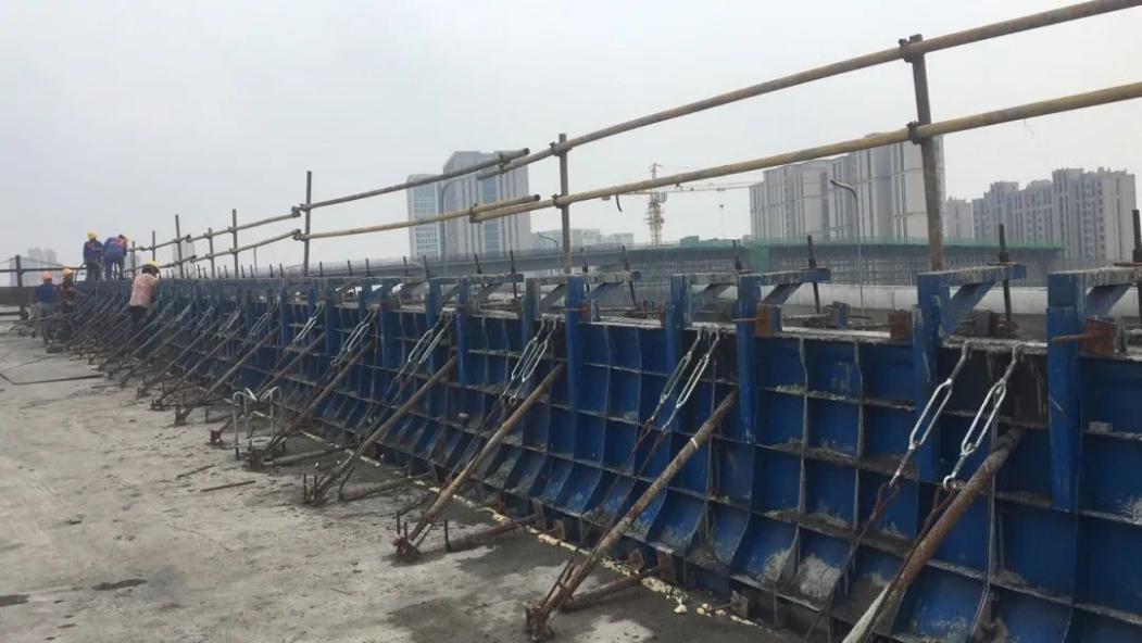自防撞護欄施工以來,項目部多措并舉,綜合管控現(xiàn)場施工安全及質(zhì)量,保證橋面系及防撞護欄施工穩(wěn)步推進。面對防撞護欄施工圓曲線半徑較小、鋼筋預(yù)埋準確度控制難度大、鋼筋線型調(diào)整難度大等難題,從測量放線、立模校正到澆筑砼,全程設(shè)專人盯控,嚴格“三檢”制度,堅持“樣板引路”,抓好質(zhì)量管控。同時,多次組織召開防撞護欄“回頭看”等專題會議,不斷總結(jié)經(jīng)驗、優(yōu)化施工方案,平穩(wěn)有序推進施工進度。