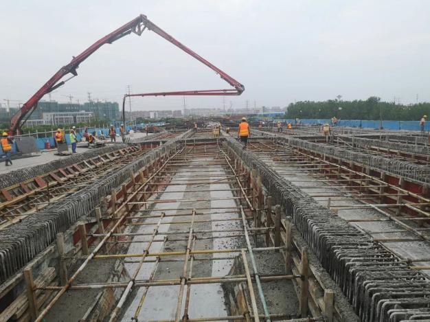 雙節(jié)期間,在快速路項目施工現(xiàn)場,塔吊林立、人影忙碌、車輛穿梭,建設者們鉚足干勁、爭分奪秒。截止目前,運河路先導段主線已經(jīng)建成,正在進行輔道剩余水穩(wěn)和瀝青攤鋪;隧道段正在進行剩余樁基施工、土方開挖和隧道主體施工;高架段正在進行現(xiàn)澆箱梁澆筑、雨污水管道及剩余樁基、承臺、墩柱施工。潤揚路先導段上部結構箱梁主體結構施工已完成88%,已進入主體結構施工沖刺階段;隧道段正在進行圍護樁結構施工及隧道主體土方開挖,隧道主體同步實施,同時進行污水管道遷改、冠梁及混凝土支撐施工;高架段正在進行剩余樁基及下部結構施工、現(xiàn)澆箱梁施工完成25%,附屬配套和供電專用管廊正在緊鑼密鼓施工。萬??焖俾氛谶M行主線高架橋剩余鉆孔樁及下部結構施工、現(xiàn)澆箱梁施工及雨污水管道施工;京杭大運河主橋正在進行臨時支架搭設和主橋鋼結構加工,京杭大運河大橋已完成河西北側(cè)邊跨邊拱鋼桁梁安裝(200噸),計劃10月10日進行京杭大運河西岸邊跨中拱第2次吊裝。