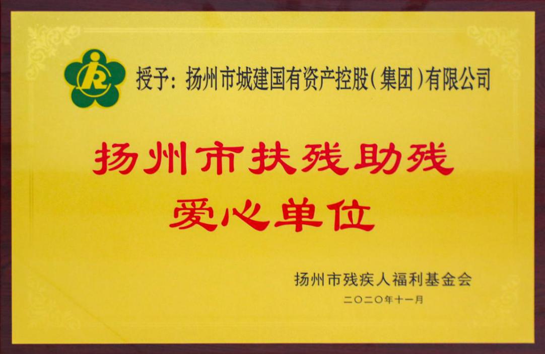 12月2日,在第29個“國際殘疾人日”到來之際,城控集團被揚州市殘疾人福利基金會表彰為“2020年扶殘助殘愛心單位”,這是城控集團在履行社會責(zé)任、關(guān)愛弱勢群體工作中獲得的又一項榮譽。