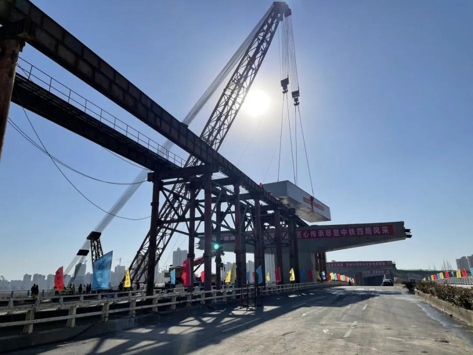 跨古運(yùn)河鋼箱梁橋施工是項(xiàng)目的重難點(diǎn)。為了確保此次吊裝順利完成,項(xiàng)目部成功解決了35KV高壓遷改、老橋下部結(jié)構(gòu)施工空間受限、橋位西側(cè)揚(yáng)州閘導(dǎo)流墩對吊裝設(shè)備站影響、老橋上不能搭設(shè)臨時(shí)支架、鋼梁兩側(cè)混凝土箱梁同時(shí)施工等多重困難,對現(xiàn)場施工人員進(jìn)行安全技術(shù)交底,及時(shí)清除承臺冰雪,做好冬季防護(hù)措施。