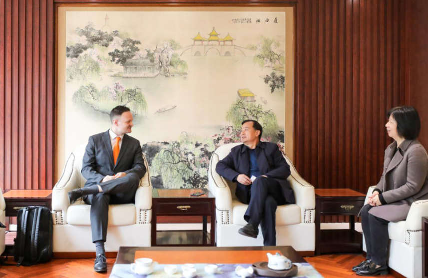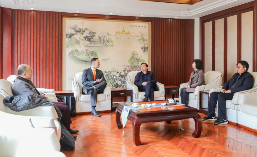 為推進揚州與布雷達兩市水務(wù)合作項目,3月3日,荷蘭貿(mào)易促進委員會南京代表處首席代表理查德先生、副代表何霖先生一行拜訪市城控集團,市城控集團黨委書記、董事長葉善祥,副總經(jīng)理周平與理查德先生一行進行了親切友好的會談和交流。市外辦副主任徐靜、城控集團相關(guān)子公司負責(zé)人參加了座談。