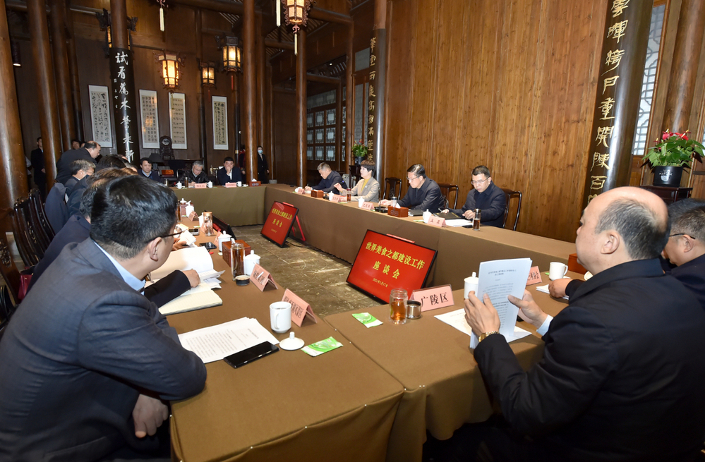 隨后,張寶娟在盧氏古宅慶云堂主持召開(kāi)世界美食之都建設(shè)工作座談會(huì),葉善祥董事長(zhǎng)匯報(bào)了康山鹽商文化園目前的運(yùn)營(yíng)情況,以及城控集團(tuán)在世界美食之都建設(shè)中所做的工作。