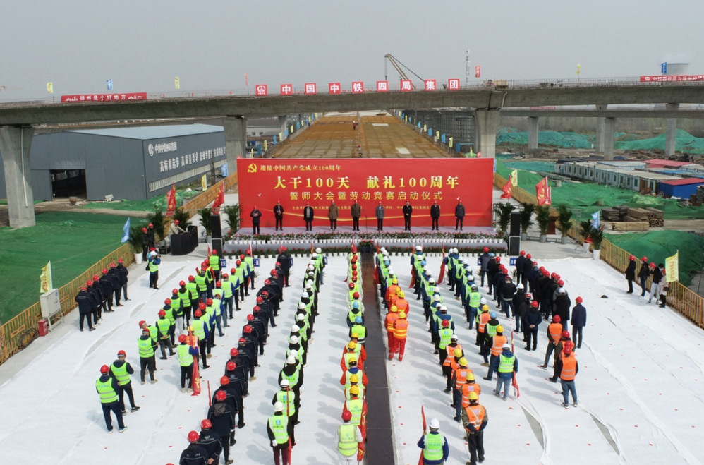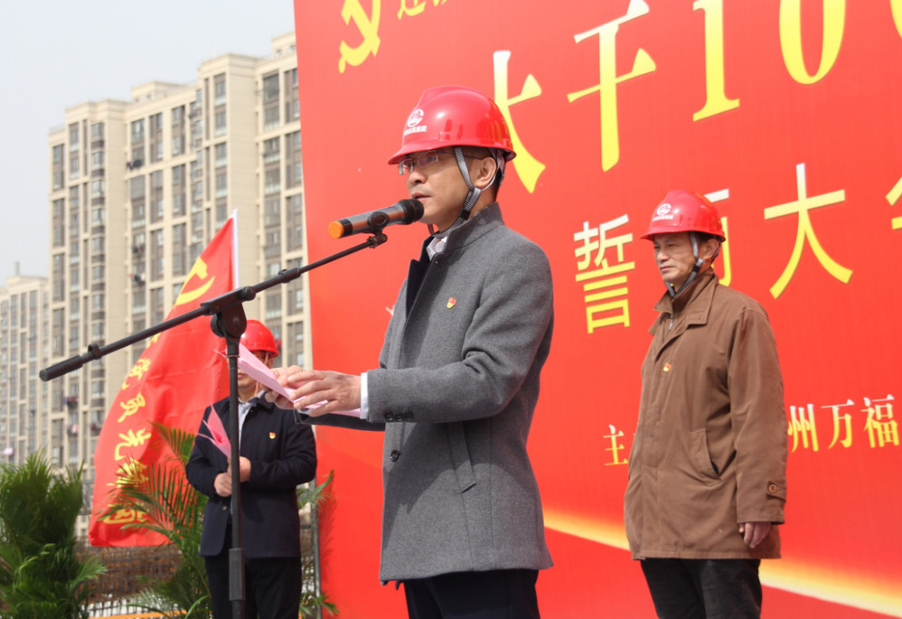“大干100天,獻(xiàn)禮100周年”勞動(dòng)競(jìng)賽將以建設(shè)管理為主線,以質(zhì)量創(chuàng)優(yōu)為核心,以安全生產(chǎn)為重點(diǎn),以確保工期為目標(biāo),以創(chuàng)新創(chuàng)效為動(dòng)力,以項(xiàng)目黨建為引領(lǐng),在確保施工安全和工程質(zhì)量的前提下,主要圍繞“安全生產(chǎn)、工程質(zhì)量、工程管理、創(chuàng)新創(chuàng)效、廉潔自律、項(xiàng)目文化及疫情防控七個(gè)方面開(kāi)展。活動(dòng)中,各參建單位進(jìn)行了莊嚴(yán)的宣誓,參加活動(dòng)的領(lǐng)導(dǎo)為“黨員先鋒隊(duì)”“青年突擊隊(duì)”進(jìn)行了授旗,萬(wàn)福公司及參賽單位負(fù)責(zé)人作了表態(tài)發(fā)言,市總工會(huì)勞經(jīng)部部長(zhǎng)賀光明、城控集團(tuán)黨委副書(shū)記徐飛在活動(dòng)中作了動(dòng)員講話。