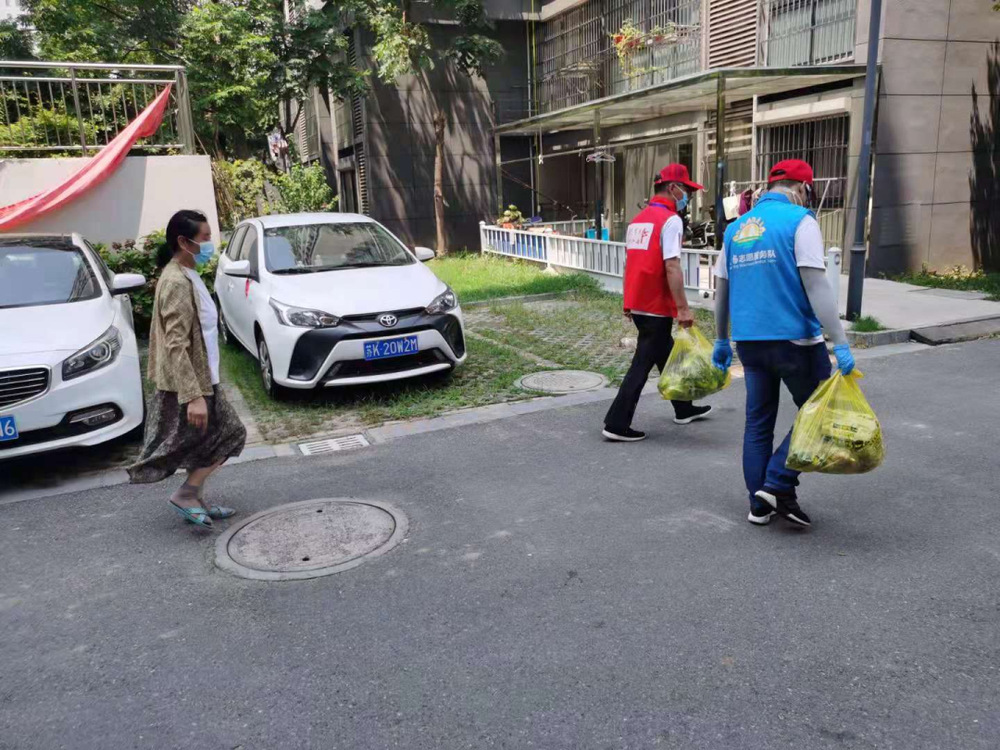 由于疫情的管控,許多路口設卡,導致居民在手機APP上采購的蔬菜及生活必須品進不來。志愿者們第一時間從內聯系在外輪休的志愿者去卡口,在全方面消毒的情況下幫居民領取生活必需品?!耙咔橄拢銈円惨欢ㄒWo好自己啊?!本用癜l(fā)自肺腑的關心也讓志愿隊成員們心頭涌上一陣暖意。