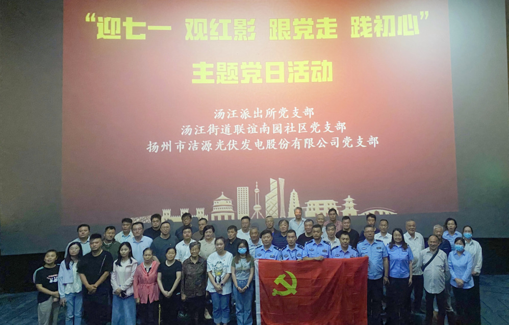 為慶祝中國共產(chǎn)黨成立102周年,進(jìn)一步增強(qiáng)干部職工干事創(chuàng)業(yè)、砥礪奮進(jìn)的使命感和責(zé)任感,6月26日下午,潔源光伏公司黨支部和湯汪派出所黨支部、聯(lián)誼南園社區(qū)黨支部聯(lián)合開展“迎七一 觀紅影 跟黨走 踐初心”主題黨日活動,集中觀看影片《長空之王》。