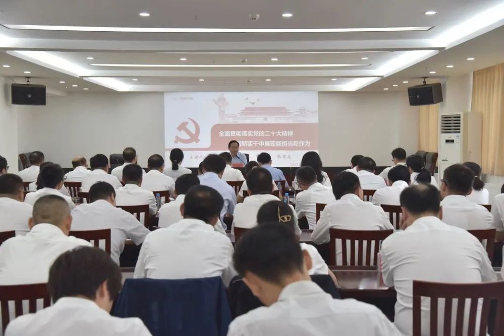 張思忠以《全面貫徹黨的二十大精神 在創(chuàng)新實(shí)干中展現(xiàn)新?lián)?dāng)新作為》為題,從“為何黨員干部必須要有擔(dān)當(dāng)、衡量黨員干部敢于擔(dān)當(dāng)?shù)臉?biāo)準(zhǔn)、用實(shí)際行動詮釋‘擔(dān)當(dāng)’”三個方面進(jìn)行了闡述,他結(jié)合長江水務(wù)實(shí)際,既分析了問題,又提出了要求,為長江水務(wù)下一步發(fā)展指明了方向。