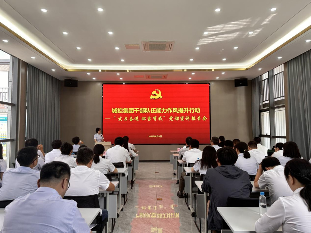 為深入學(xué)習(xí)貫徹習(xí)近平新時代中國特色社會主義思想和黨的二十大精神,切實提升集團干部隊伍能力作風(fēng)建設(shè),8月4日上午,集團在城建置業(yè)公司天璟融園項目部舉辦了第一場“發(fā)力奮進 擔(dān)當(dāng)有我”黨課宣講報告會。集團黨委副書記徐飛、集團黨群部負責(zé)人,城建置業(yè)公司領(lǐng)導(dǎo)班子成員、各部門負責(zé)人、全體黨員,天璟融園項目參建、聯(lián)建單位黨員代表共計50余人參加活動。