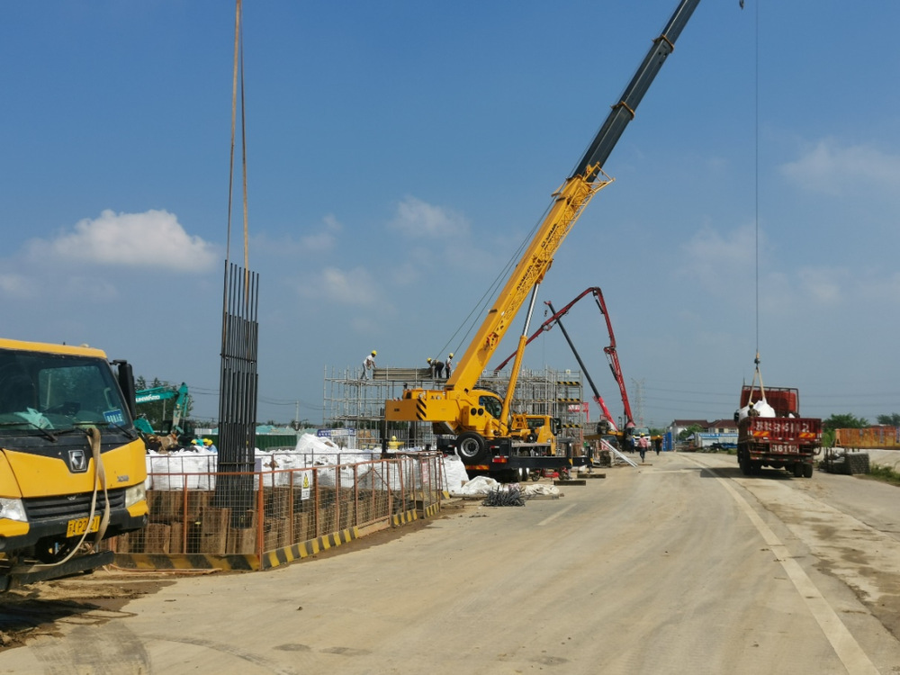 運河路北延工程起點位于江運互通,依次上跨寧啟鐵路,下穿北沿江高鐵,終點位于槐泗河以南約60米處,道路總長約1.28公里。工程于2023年6月開工建設(shè),計劃于2024年12月竣工通車。目前,已完成鋼筋加工廠搭設(shè)、交通導改等工作,正在進行樁基、承臺、墩柱及支架搭設(shè)等施工。