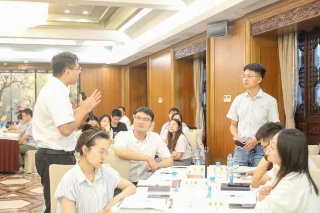在之后的我點你答和分組討論環(huán)節(jié),大家圍繞文旅融合發(fā)展、街區(qū)運營、綠色低碳新業(yè)態(tài)、大運河十里外灘和小秦淮河項目建設(shè)等話題展開討論,并就推動集團及自己所在企業(yè)的高質(zhì)量發(fā)展獻出妙計良策,現(xiàn)場氛圍活躍,與會青年代表踴躍發(fā)言,紛紛提出自己的看法。集團領(lǐng)導(dǎo)針對青年代表的精彩發(fā)言,現(xiàn)場與青年代表們深入交流互動。