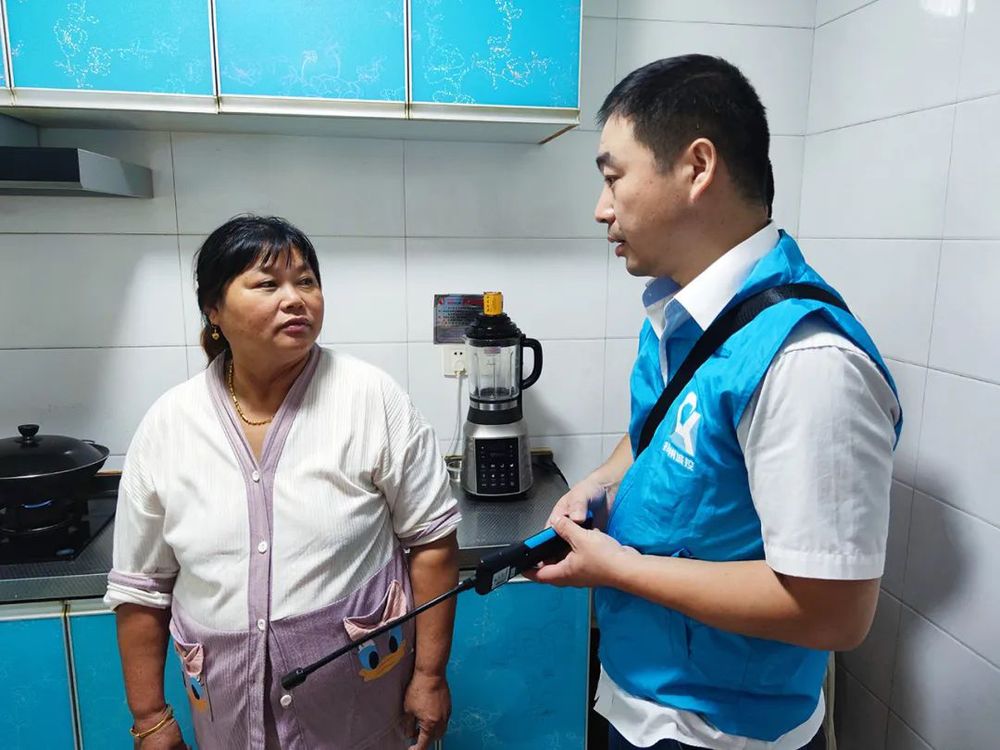 中秋來(lái)臨之際,藍(lán)焰衛(wèi)士走訪慰問(wèn)了谷營(yíng)村的兩戶困難群眾,并送上了節(jié)日祝福和生活用品,隨行安檢人員對(duì)兩戶家庭進(jìn)行全面燃?xì)獍踩珯z查,并以通俗易懂的方式耐心講解安全常識(shí),叮囑不用氣時(shí)要及時(shí)關(guān)閉閥門(mén),開(kāi)窗保持通風(fēng)。安檢過(guò)程中發(fā)現(xiàn)其中一戶存在外管支架脫落的問(wèn)題,現(xiàn)場(chǎng)做了臨時(shí)處理并及時(shí)反饋給公司相關(guān)部門(mén)快速解決。兩位老人對(duì)藍(lán)焰衛(wèi)士的到來(lái)表示熱情歡迎,“在中秋佳節(jié)來(lái)臨之際,感謝藍(lán)焰衛(wèi)士的服務(wù)與慰問(wèn),讓我們提前感受到傳統(tǒng)節(jié)日的濃厚氛圍和揚(yáng)州中燃帶來(lái)的的溫暖!”