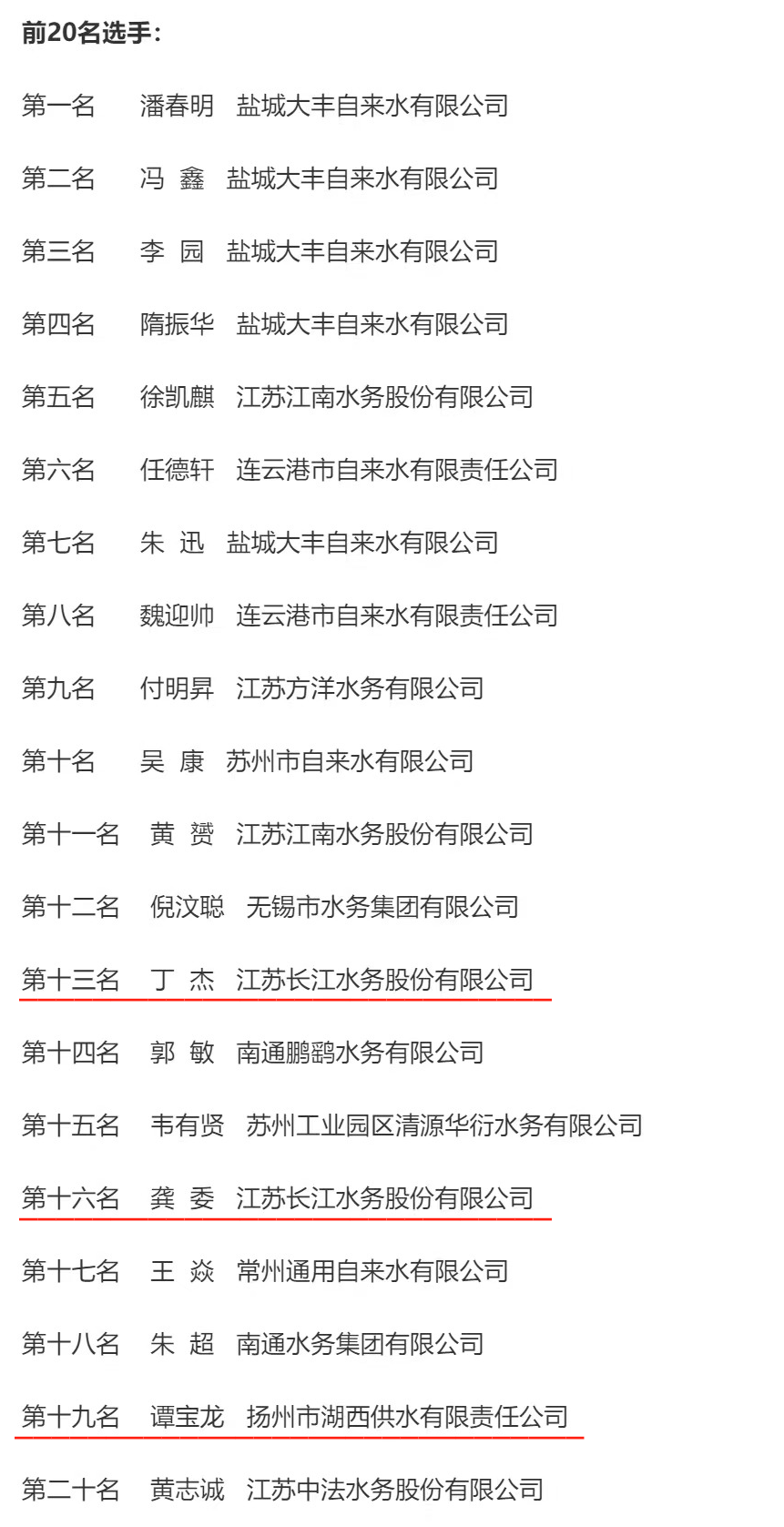 功夫不負(fù)有心人,他們在賽場上充分發(fā)揚奮勇爭先、團結(jié)奮斗的精神風(fēng)貌,賽出了水平、賽出了狀態(tài),展現(xiàn)了長江水務(wù)一線職工良好的專業(yè)素養(yǎng)和過硬的技術(shù)技能水平,為長江水務(wù)公司和揚州代表隊贏得了榮譽。