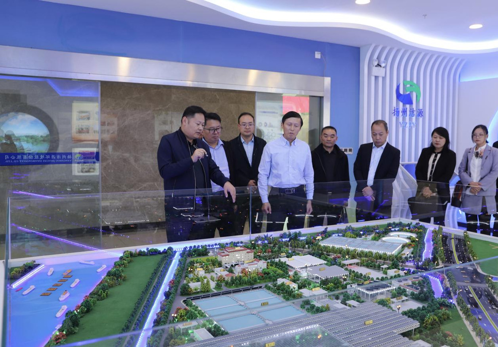 沈家寬一行首先參觀了潔源環(huán)境公司綜合環(huán)保展廳,聽取了市區(qū)污水處理廠建設(shè)和運行情況的匯報,并現(xiàn)場參觀了湯汪污水處理廠中央控制室,調(diào)研組一行對湯汪污水處理廠的穩(wěn)定優(yōu)質(zhì)運行表示了肯定。