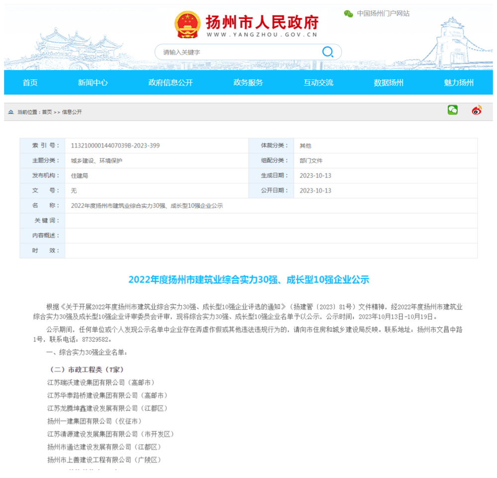 近日,揚州市建筑業(yè)綜合實力30強、成長型10強評選結(jié)果公示,上善公司成功晉級揚州市建筑業(yè)綜合實力30強。