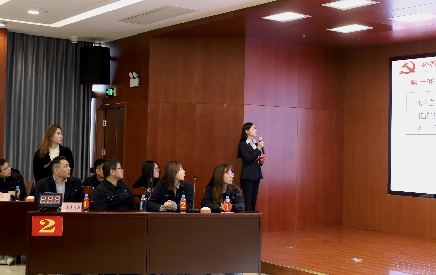 競賽知識以黨史、文史和新中國史為主要內容,設置了必答、搶答、風險和觀眾互動等多種題型。來自公司四個黨支部的參賽隊員精神飽滿、沉著應答,在競賽過程中賽知識、比手速、拼腦力,展現(xiàn)出扎實的理論學習功底和豐富的知識儲備,大家踴躍競答、你追我趕,比分交替上升,搶答扣人心弦,整場競賽高潮迭起,引得現(xiàn)場觀眾掌聲連連。