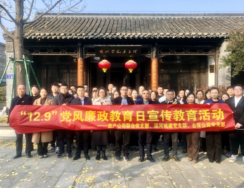 12月6日,資產(chǎn)公司聯(lián)合黨支部、運河城建公司黨支部和古保公司黨支部聯(lián)合組織公司黨員、入黨積極分子前往揚州阮家祠堂開展“12·9”黨風(fēng)廉政教育日活動。