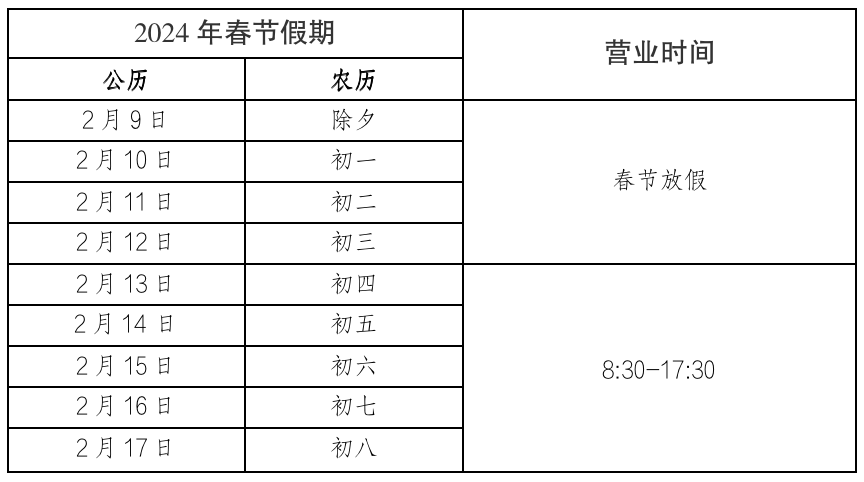 春節(jié)期間,瘦西湖北門營業(yè)廳(平山堂東路35號)和個園營業(yè)廳(鹽阜東路10號)正常營業(yè)(8:00-17:00)。