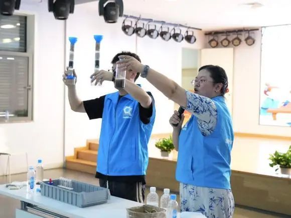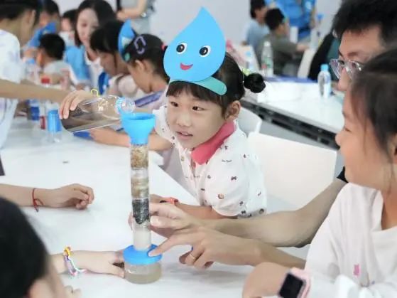 在工作人員的指導(dǎo)下,小朋友們還親自動手參與水的凈化等科學(xué)小實驗,體驗了水從渾濁到清澈的神奇轉(zhuǎn)變過程。