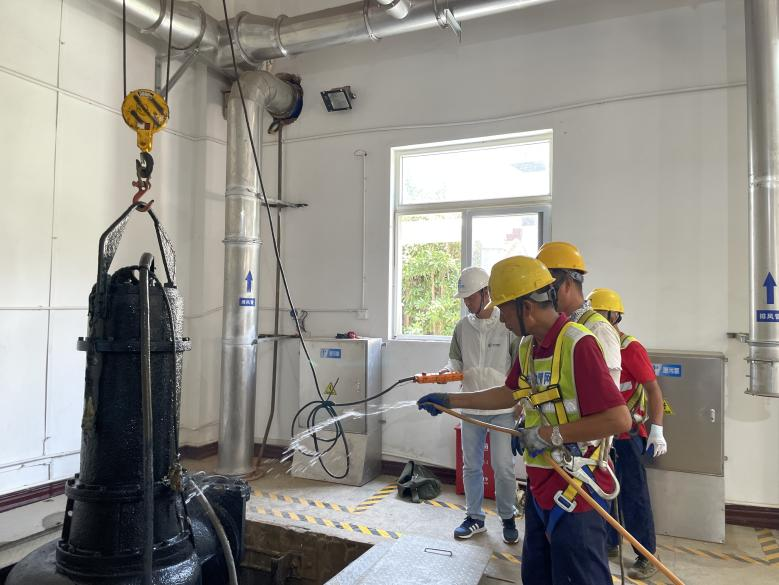 下午三點(diǎn),東花園污水提升總泵站里室溫已接近40度,設(shè)備運(yùn)行的轟鳴聲混合著由于天氣炎熱,污水發(fā)酵所散發(fā)的陣陣惡臭,令人難以在此久留。劉亞正大汗淋漓地在此處檢修著設(shè)備,他是市政管網(wǎng)運(yùn)行調(diào)度中心設(shè)備管理員。“泵站是市政管網(wǎng)水路流通的‘馬達(dá)’,一刻不能?!?,劉亞說。由于泵站實(shí)行24小時(shí)自動化運(yùn)轉(zhuǎn)且無人值守,他定期會對設(shè)備進(jìn)行細(xì)致的檢修與維護(hù)。