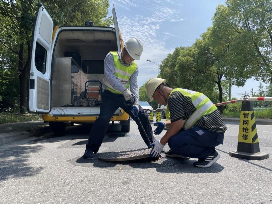 上午八點(diǎn)半,驕陽初升,迎著滾滾熱浪,揚(yáng)州市政管網(wǎng)巡檢員張敬豐開始了一天的工作。他騎著電動自行車,在轄區(qū)內(nèi)巡檢污水管網(wǎng)、排口、截流井、倒虹管等設(shè)施,確保管線安全。在雙塘東路,一處井口附近有破路現(xiàn)象,開井后有雨水支管接入,張敬豐隨即拍照并電話通知施工隊(duì)盡快封堵,“如果雨水流進(jìn)污水管網(wǎng),就會增加城市污水系統(tǒng)的負(fù)擔(dān),影響正常運(yùn)轉(zhuǎn)”。