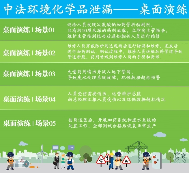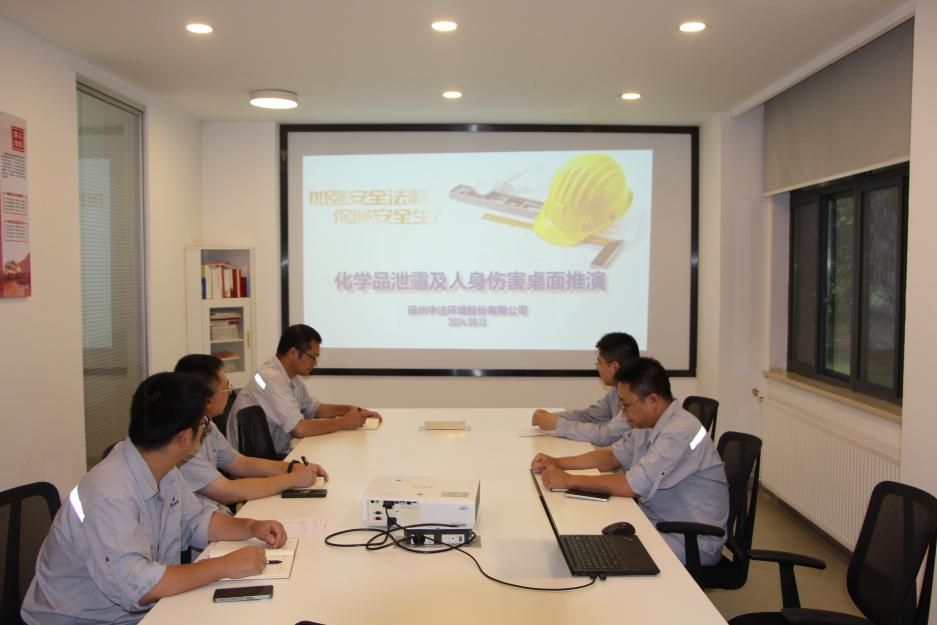 為進(jìn)一步提升公司職工在應(yīng)對突發(fā)環(huán)境事件時的應(yīng)急響應(yīng)能力,最大限度減少損失和影響,8月13日下午揚州中法環(huán)境組織開展了化學(xué)品泄漏桌面推演活動,公司運營維護(hù)部、技術(shù)部、安環(huán)部、綜合部參加活動。