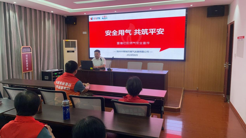 在社區(qū)會議室,揚(yáng)州中燃“藍(lán)焰”志愿者還為即將使用天然氣的莊臺居民,帶去了一場燃?xì)獍踩褂弥黝}講座,對燃?xì)獍踩WR、夏季安全用氣注意事項、燃?xì)馐鹿试蚍治龅冗M(jìn)行了詳細(xì)的講解。