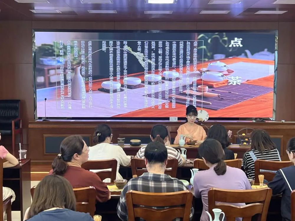 活動(dòng)開(kāi)始后,老師向大家介紹了宋代點(diǎn)茶的歷史背景,帶領(lǐng)大家了解宋人的點(diǎn)茶文化,接著邊講解邊示范了備水、碾茶、點(diǎn)茶、分茶的過(guò)程。職工們被點(diǎn)茶的獨(dú)特過(guò)程深深吸引,在老師的引導(dǎo)下,全身心投入到制作過(guò)程,大家平心靜氣,緩緩持起文雅的茶器,開(kāi)始用心點(diǎn)茶,全神貫注感受宋韻文化的意境,看著沉浮云沫,聞著四溢茶香,須臾之間,仿佛重沐了宋代的清風(fēng)朗月,沉浸其中,盡享歡愉。