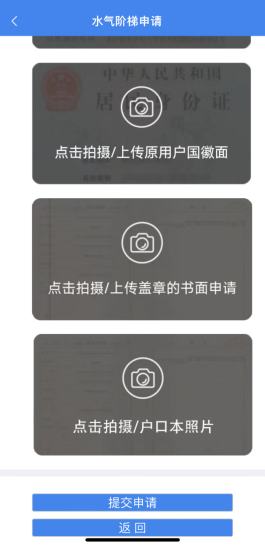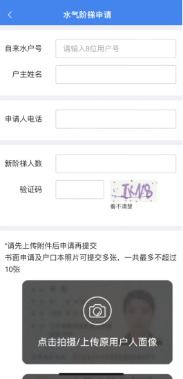 05填寫業(yè)務(wù)辦理信息根據(jù)自身情況填寫“自來水/燃氣戶號”、“戶主姓名”、“申請人電話”、“新階梯人數(shù)”,上傳身份證正反面照片(必須項),若戶口本人口數(shù)與新階梯人數(shù)一致,上傳戶口本照片即可提交申請。(若不一致,還需在申請說明頁面下載“證明模板”填寫并蓋章后上傳,照片最多上傳10張哦~)