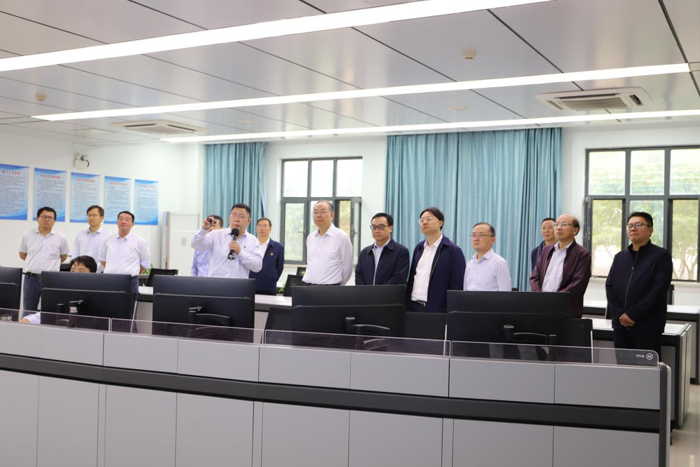 在一樓綜合環(huán)保展廳,公司講解員借助沙盤(pán)模型向檢查組一行詳細(xì)介紹了湯汪污水處理廠目前的運(yùn)行規(guī)模、工藝處理流程、水質(zhì)排放標(biāo)準(zhǔn)及社會(huì)經(jīng)濟(jì)效益現(xiàn)狀。隨后,檢查組一行來(lái)到廠區(qū)中心控制室,更加直觀的了解了廠區(qū)運(yùn)行控制情況。