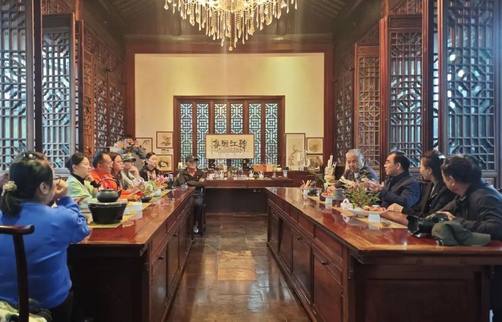 成都旅游協(xié)會(huì)成員被長樂客棧精致的園林景觀和建筑特色深深吸引,紛紛駐足拍照。在客棧內(nèi)的春川茶寮,充滿文化氣息的茶藝服務(wù)充分展現(xiàn)了揚(yáng)州非遺文化的魅力,給大家留下了深刻的印象。