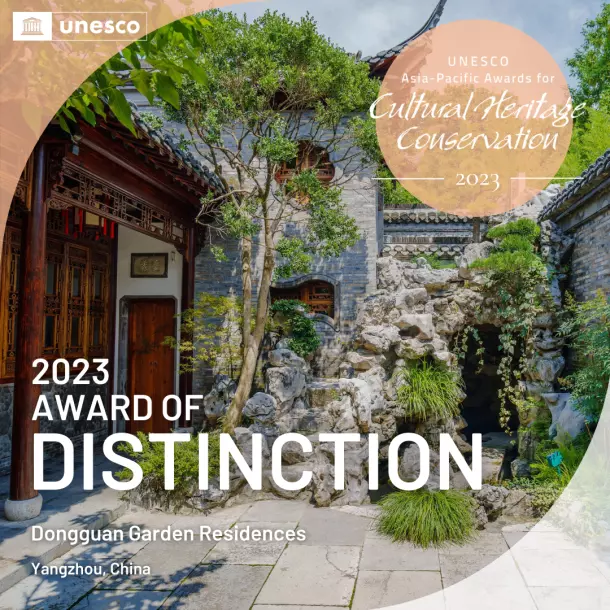 亞太文化遺產(chǎn)保護獎是由聯(lián)合國教科文組織發(fā)起的區(qū)域性獎項,旨在表彰亞太地區(qū)個人及公私部門在保護或恢復區(qū)域具有遺產(chǎn)價值的建筑、場所和不動產(chǎn)方面取得的成就,以鼓勵個人參與及公私合作,保護本地區(qū)的文化遺產(chǎn),造福今世后代。2023年12月21日,揚州城控集團申報的“揚州東關街園宅保護與傳承復興項目”從亞太地區(qū)8個國家48個參賽項目中脫穎而出,斬獲聯(lián)合國教科文組“2023年度亞太文化遺產(chǎn)保護獎杰出獎”,是中國唯一獲得“杰出獎”的文保項目。聯(lián)合國教科文組織在項目評審語中寫到“東關歷史文化街區(qū)是傳統(tǒng)文化與當代景觀設計的完美結合,為亞太地區(qū)古典園林保護及活化利用提供了重要參考”。