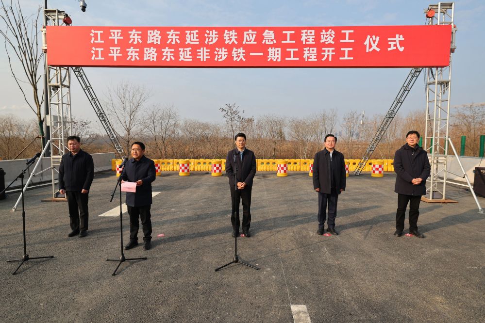 江平東路東延涉鐵應(yīng)急工程竣工、江平東路東延非涉鐵一期工程開工儀式現(xiàn)場(chǎng)