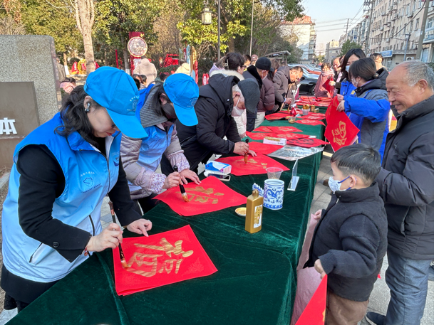 活動當天,長江水務公司第六黨支部“水質(zhì)安全衛(wèi)士”志愿者們早早來到寶帶社區(qū)中心廣場,準備好紅紙和筆墨紙硯,現(xiàn)場揮毫潑墨,筆鋒婉轉(zhuǎn),書寫了一幅幅寓意吉祥的“?!弊炙偷骄用袷种?。活動現(xiàn)場墨香四溢、熱鬧非凡,洋溢著喜慶的節(jié)日氣氛。活動過程中,“水質(zhì)安全衛(wèi)士”志愿者們還向居民們發(fā)放了冬季用水防凍保溫宣傳單,提醒大家低溫冰凍天氣保護用水設施,安全安心用水。