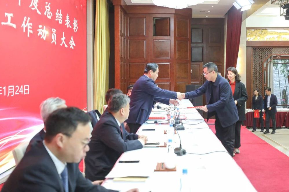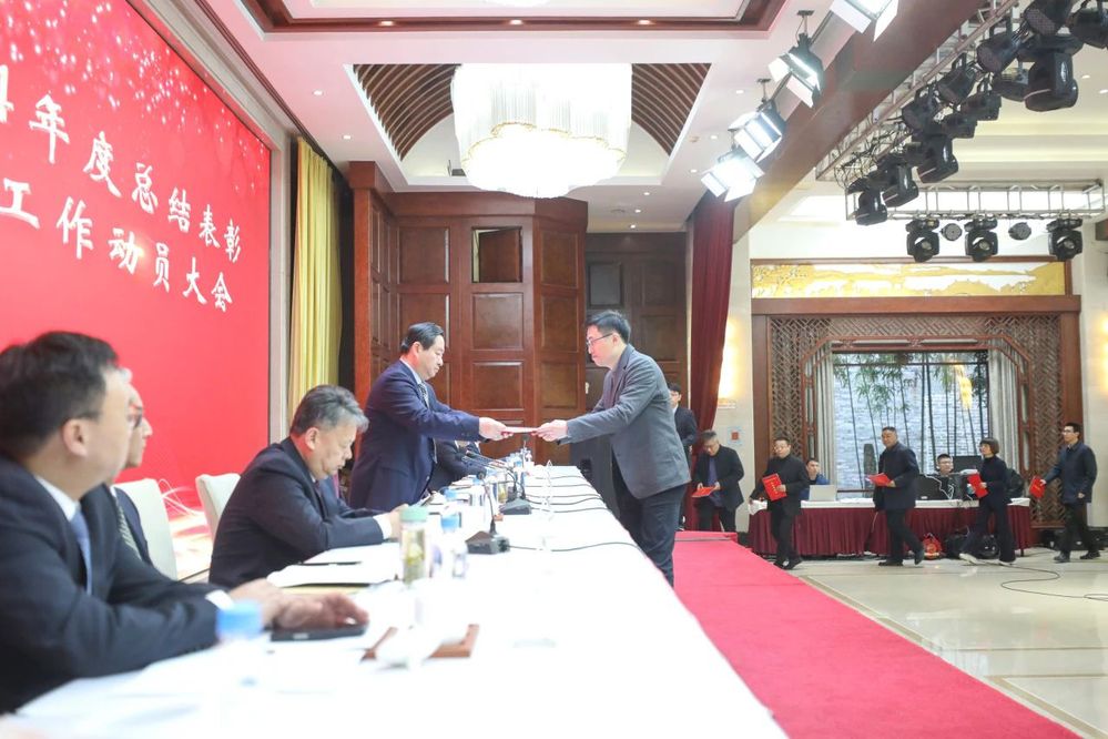 會議還表彰了2024年度先進單位、突出貢獻單位、先進集體、先進個人;2024年度安全生產(chǎn)先進單位、先進集體、先進個人;2024年優(yōu)質(zhì)服務先進單位、先進班組和先進個人。各部室、各單位主要負責人向張思忠董事長遞交了2025年經(jīng)營管理目標責任書、黨建和精神文明建設目標責任書、黨風廉政建設責任書和安全生產(chǎn)目標責任書。計財部、城建置業(yè)公司、長江水務公司、市政管網(wǎng)公司分別作了表態(tài)發(fā)言。