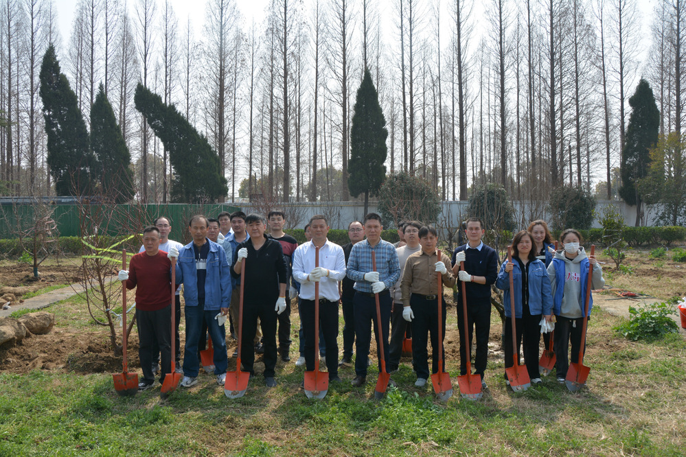 上午10時,公司西大院內氣氛熱烈,大家三五人一組,扶苗、培土、澆水……各個環(huán)節(jié)井然有序,配合默契。經過一上午的辛勤勞動,30余株新栽下的樹苗迎風挺立,呈現勃勃生機。