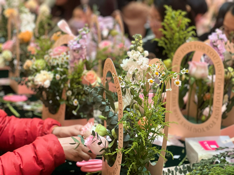 插花體驗是活動的亮點之一,花藝師們早已準(zhǔn)備好各色鮮花,等待著女神們的到來。在這里,花藝師輕聲細(xì)語地講解著插花的技巧,女神們手中輕捻著花瓣,用心感受著每一朵花的生命力,她們將不同顏色的花朵巧妙搭配,修剪枝葉,最終創(chuàng)造出屬于自己的花藝作品。那一刻,她們不僅是插花的創(chuàng)作者,更是春天的詩人,用雙手編織出一個個浪漫的花語故事。