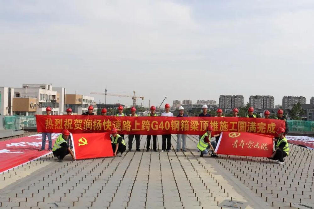 5月20日上午,潤(rùn)揚(yáng)南路快速化改造工程(開(kāi)發(fā)路—華揚(yáng)西路段)上跨G40滬陜高速公路鋼箱梁頂推工作圓滿完成落梁,標(biāo)志著本工程取得階段性成果。