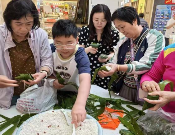 端午與六一的相遇,也讓一年一度的包粽子環(huán)節(jié)增添了不少童趣,在各物業(yè)服務(wù)中心、嘉都匯商業(yè)鄰里中心,業(yè)主們圍聚在一起,靈巧的雙手翻飛間,粽葉、糯米交織成一個(gè)個(gè)棱角分明的粽子。孩子們也在長(zhǎng)者與管家的指導(dǎo)下,完成了自己的粽子“作品”,端午的傳統(tǒng)民俗文化在粽葉的清香和孩子們的歡笑中得到了傳承。管家們還貼心地為業(yè)主們送上寓意驅(qū)邪避疫、平安健康的艾草,業(yè)主紛紛表示,這些活動(dòng)不僅傳承了優(yōu)秀傳統(tǒng)文化,更拉近了鄰里距離。