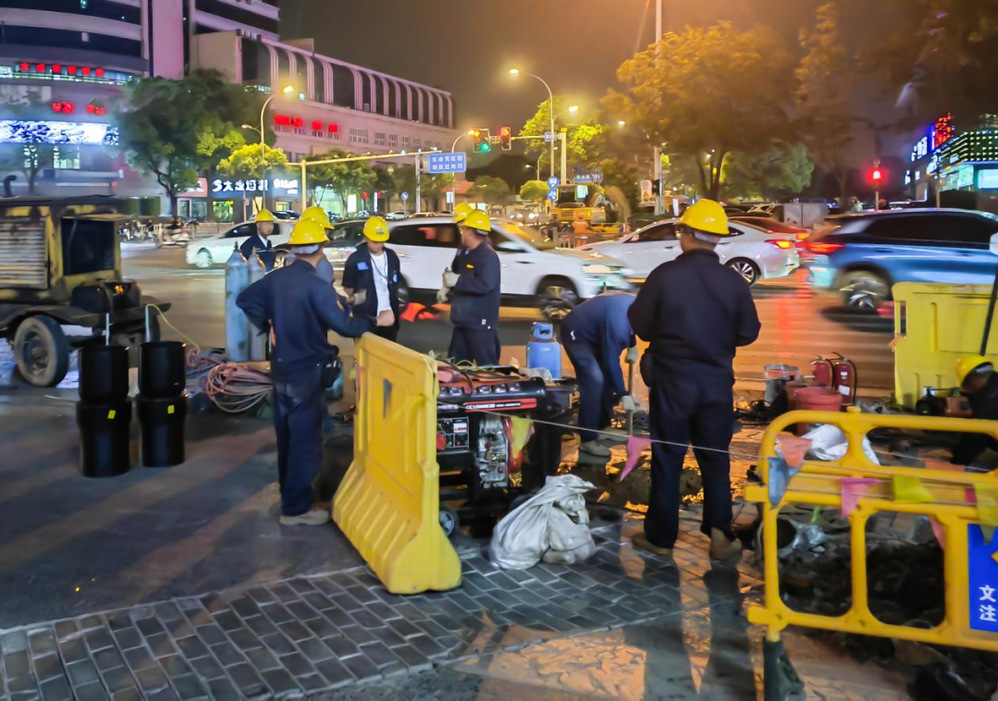 此次改造工程任務(wù)艱巨,停氣范圍廣、焊接工作量大,對施工組織和技術(shù)保障提出了極高要求。為了將施工對市民生活和城市交通的影響降至最低,揚(yáng)州中燃精心策劃,組織了兩支經(jīng)驗豐富的施工隊伍同時施工,保障施工流程順暢高效進(jìn)行。5月28日21點(diǎn),當(dāng)城市逐漸進(jìn)入夢鄉(xiāng),施工人員們精神抖擻地投入到緊張的施工中。他們克服夜間作業(yè)視線差、體力消耗大等困難,嚴(yán)格按照施工規(guī)范和安全標(biāo)準(zhǔn),爭分奪秒推進(jìn)焊接、新舊管道切換等工作。經(jīng)過全體施工人員的不懈努力,至次日清晨6點(diǎn)完成改造、恢復(fù)供氣,確保周邊居民能夠正常使用燃?xì)狻?/p>