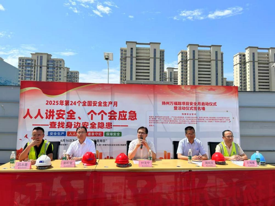 為深入貫徹落實安全生產(chǎn)責(zé)任制,扎實推進安全生產(chǎn)工作,6月5日上午,上善公司在萬福快速路東延建設(shè)工程現(xiàn)場舉行2025年“安全生產(chǎn)月”啟動儀式。公司領(lǐng)導(dǎo)班子、各方參建管理人員及各施工隊組50余人參加活動。