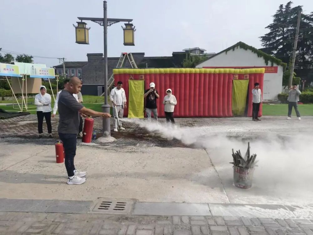 培訓結束后,在小秦淮街區(qū)現(xiàn)場開展了一場緊張有序的應急逃生及消防演練。隨著警報聲響起,參與培訓的員工在工作人員的引導下,捂住口鼻,彎腰低姿,沿著預定逃生路線快速、有序地撤離到安全區(qū)域。隨后,工作人員通過理論講解與現(xiàn)場示范相結合的方式,詳細指導員工正確使用滅火器。大家踴躍參與實踐操作,在“手把手”教學中掌握了滅火器“提、拔、握、壓”的使用要領,切實提升了應對突發(fā)火災的能力。