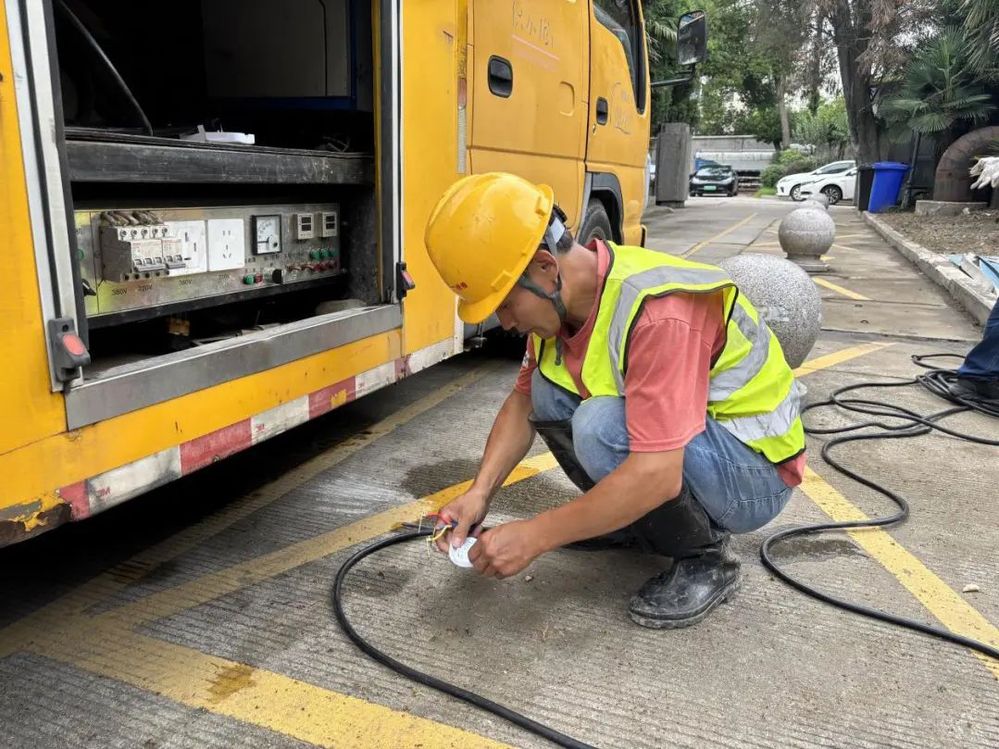 隨著監(jiān)控人員發(fā)現(xiàn)險情并報告指揮組,演練正式啟動。應(yīng)急指揮組迅速啟動防汛預(yù)案,各小組按分工火速行動:物資保障組第一時間將沙袋、排水泵等物資運送至現(xiàn)場,在配電房周邊構(gòu)筑防水圍堰,防止積水倒灌;技術(shù)搶修組穿戴絕緣裝備,熟練操作多功能搶修車連接應(yīng)急電源,啟動大功率排水泵實施快速抽排,全力保障配電設(shè)備安全;水質(zhì)監(jiān)測組同步開展水質(zhì)檢測,確保供水水質(zhì)達(dá)標(biāo)。