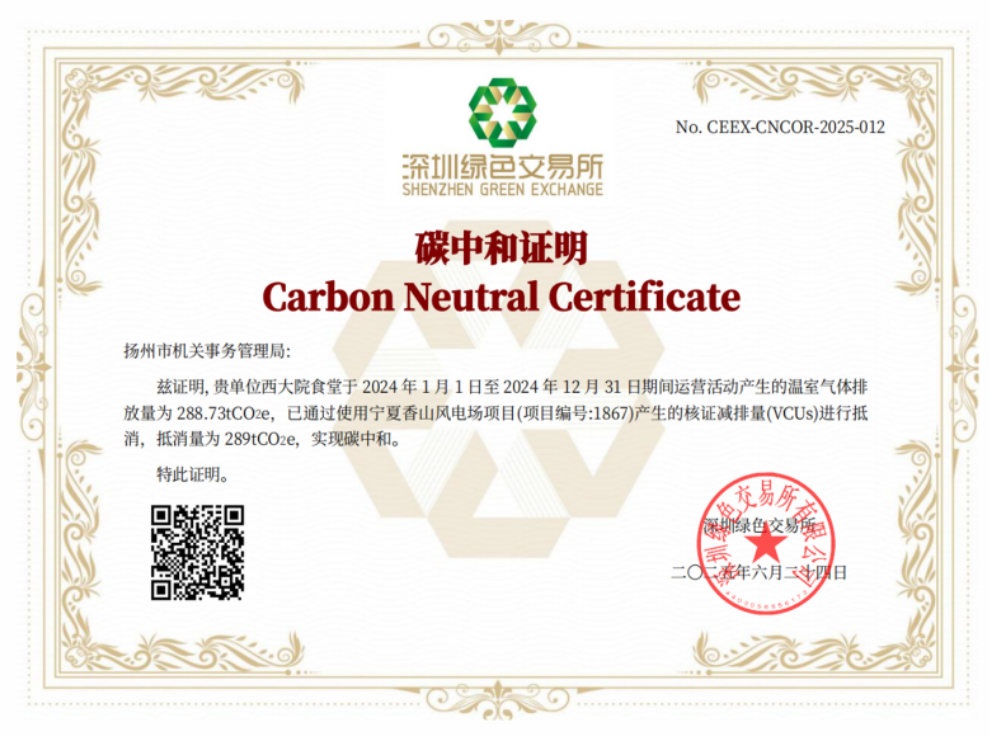 近日,由能源集團攜手機關事務局共同打造的全省首個機關零碳食堂項目順利投運,該項目位于揚州市政府西大院食堂,采用“光伏+碳匯+數(shù)字能源調(diào)度”綜合用能方式,即通過樓頂分布式光伏發(fā)電供應“綠電”,結(jié)合購買碳匯抵消剩余排放,最終實現(xiàn)食堂運營碳中和。2024年西大院食堂運營全年產(chǎn)生溫室氣體排放量288.73噸,能源集團提供充分技術支持,通過碳匯抵消,實現(xiàn)了從能源供給到終端消費的全鏈條減排,并獲得了深圳綠色交易所碳中和認證。當“光盤行動”遇上“綠電革命”,零碳食堂不僅是公共機構(gòu)主動領跑,率先推動綠色減排的務實舉措,更是政企合作共探區(qū)域綠色低碳轉(zhuǎn)型的生動實踐。
