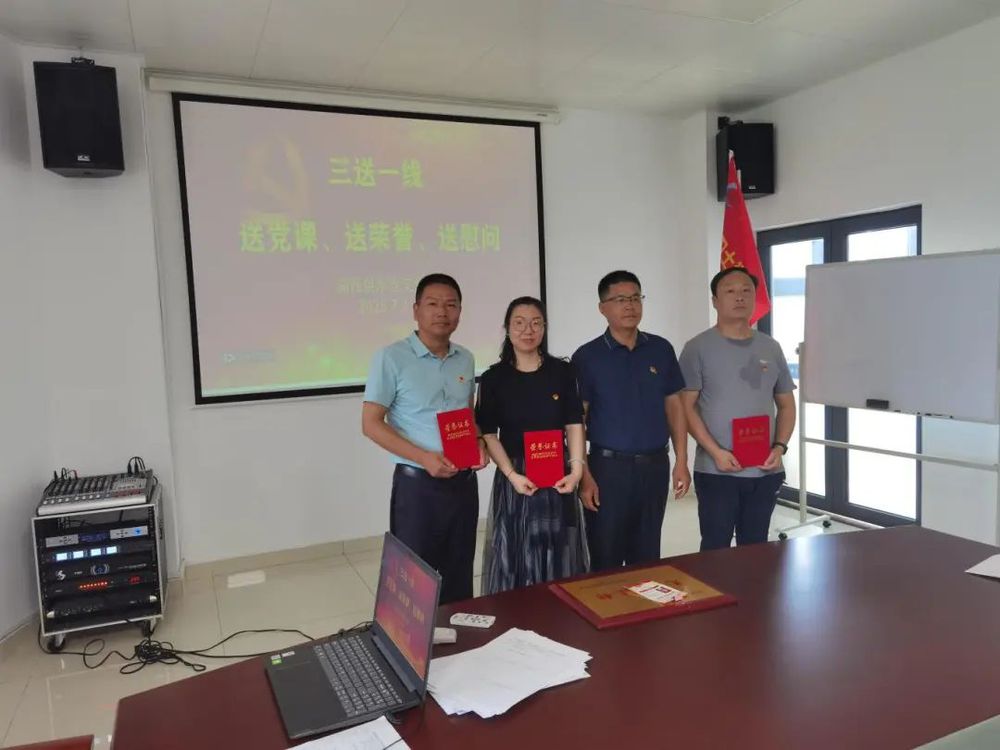 “七一”期間公司領(lǐng)導(dǎo)班子分赴各支部,為25名“優(yōu)秀共產(chǎn)黨員”、8名“優(yōu)秀黨務(wù)工作者”、3個(gè)“先進(jìn)黨支部”頒發(fā)榮譽(yù)獎(jiǎng)牌和證書(shū)并向他們表示祝賀,獲獎(jiǎng)的同志表示這份沉甸甸的榮譽(yù)既是對(duì)自己工作的肯定,更是鞭策,一定會(huì)珍惜榮譽(yù)、再接再厲,力爭(zhēng)再創(chuàng)佳績(jī),再立新功。獲獎(jiǎng)支部表示除了一如既往做好本職工作,還會(huì)充分發(fā)揮黨組織的戰(zhàn)斗堡壘作用和先進(jìn)支部的模范引領(lǐng)作用,盡職盡責(zé)為供水事業(yè)貢獻(xiàn)力量!