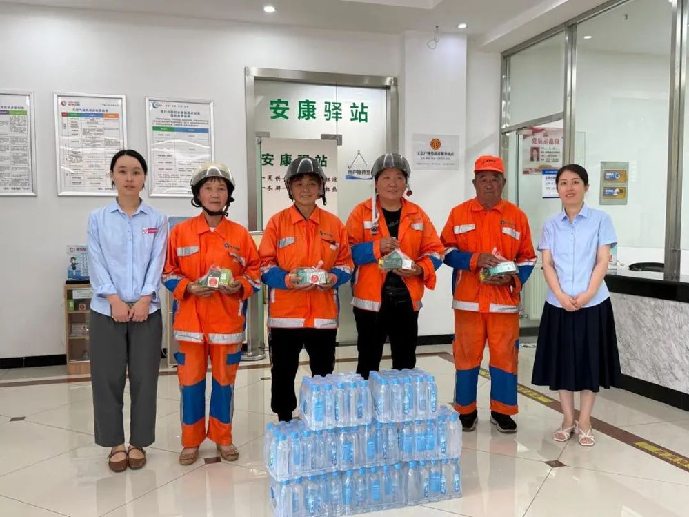 7月11日上午,長(zhǎng)江水務(wù)工作人員提前在安康驛站準(zhǔn)備好礦泉水、藿香正氣水、清涼油等防暑降溫慰問(wèn)品。當(dāng)環(huán)衛(wèi)工人結(jié)束清晨清掃工作,陸續(xù)來(lái)到驛站休憩時(shí),工作人員立刻熱情迎上前,將一份份打包好的“清涼禮包”逐一送到他們手中。