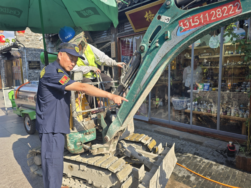 清晨6點(diǎn),東關(guān)街的青石板路尚未被暑氣浸透,保安老劉便已換上制服,戴上草帽,開(kāi)始了一天的巡邏。這條全長(zhǎng)1122米的明清古街,在暑氣中逐漸蘇醒,而老劉的腳步已丈量過(guò)它十二個(gè)春秋。