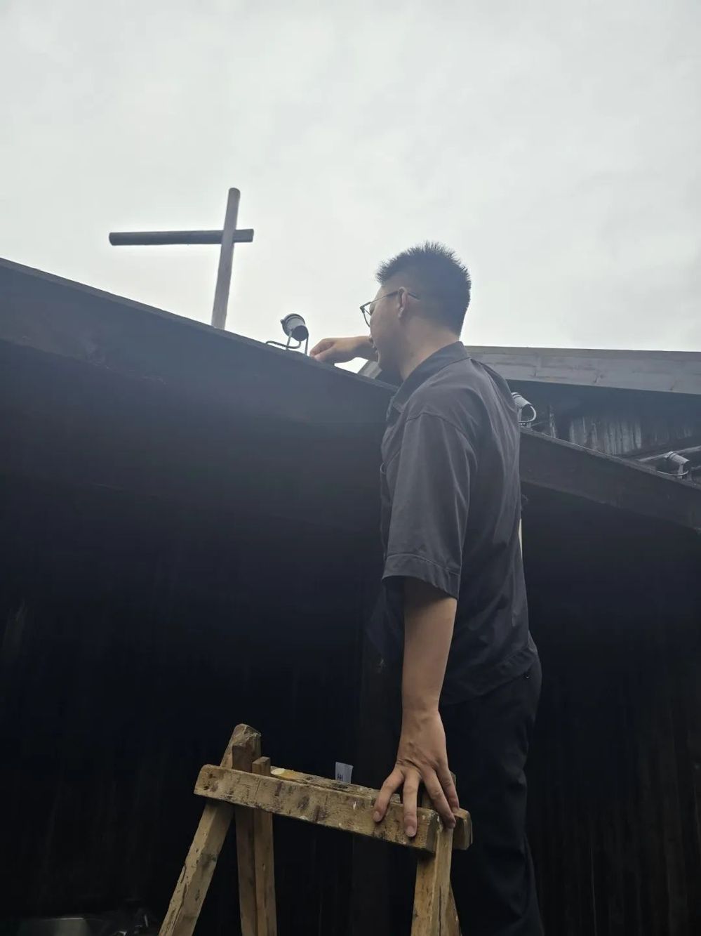 下午2點(diǎn),魯毅帶著“安全禮包”來到街區(qū)某民宿。他爬上木梯檢查屋頂太陽能熱水器固定情況,發(fā)現(xiàn)支架螺絲松動(dòng),立即掏出電動(dòng)扳手,指導(dǎo)商戶用扳手進(jìn)行緊固。轉(zhuǎn)入公共區(qū)域,魯毅的目光被墻角斑駁的接線板吸引?!巴踅隳?,這截銅線已經(jīng)薄得像紙片,同時(shí)開空調(diào)和熱水器,它就會(huì)像您煮的陽春面——發(fā)燙、發(fā)軟!”話音未落,他掏出帶有過載保護(hù)的新插座,當(dāng)著眾人接上電熱水壺,在熱水壺?zé)_的瞬間,咔嗒一聲清脆的斷電聲讓空氣凝固,商戶不由得驚出了一身冷汗。