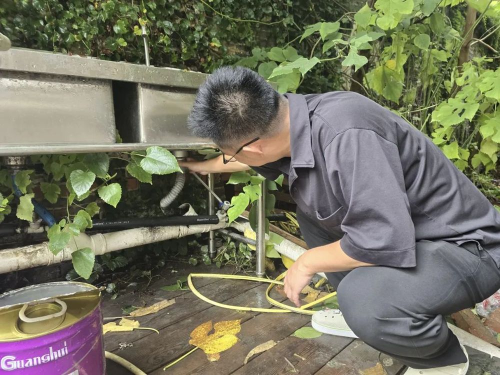 正午12點(diǎn),魯毅推開東圈門故居泵房的鐵門。他彎腰檢查排水管道水位儀,指尖在控制面板上快速跳動(dòng),將前夜模擬的臺(tái)風(fēng)路徑數(shù)據(jù)錄入系統(tǒng)。臺(tái)風(fēng)預(yù)計(jì)夜間登陸,下午必須完成所有低洼區(qū)商戶的防倒灌檢查。他邊說邊將《極端天氣安全手冊(cè)》塞進(jìn)工具包,包里還裝著測(cè)電筆、燃?xì)庑孤z測(cè)儀和一沓自己手繪的獨(dú)居老人安全檔案。